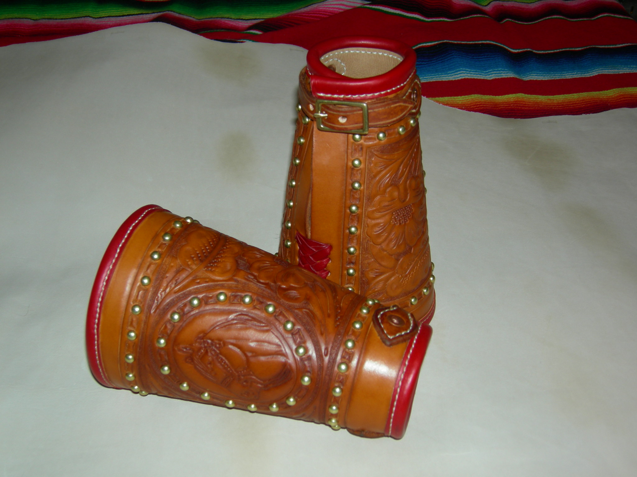 In the Old West our cowboy’s history dates all the way back to the Spanish Vaqueros. Just like horses, the Spanish introduced the art of cowboying to the United States. During the great cattle drives of the 19th century, Spanish Vaqueros signed on as a great addition to the drives, and brought with them a multitude of traditions, among them the wrist chaps. Originally a simple twist of leather or rope about the wrist, cuffs were used to protect wrists from catching and tearing on brush, cactus, whips, ropes and in some cases to protect from kicking hooves while branding cows or shoeing horses. In addition, most cowboys had about one shirt to call their own on a long drive and it was essential to protect their sleeves from the same tearing and ripping. New shirts were expensive and usually not purchased until payday at the end of the drive. Later riders utilized cuffs as a way to protect wrist while shooting and roping. So as with anything, cuffs evolved from the simple twists of leather to the larger more protective shields crafted today. Today’s cuffs, while still serving a utilitarian need have the added bonus of stepping up into the fashion world, utilizing hand tooling , studding and bling! Cuffs like any western tools present an opportunity for a story!